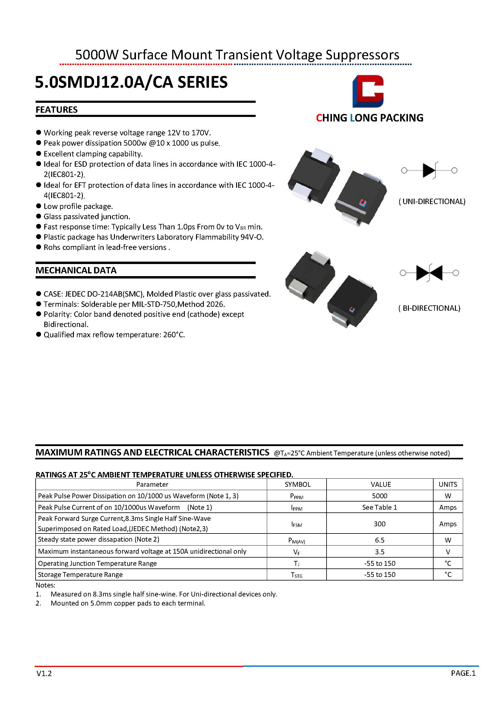 5.0SMDJ12.0A/CA SERIES