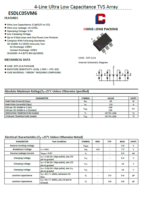 4-Line Ultra Low Capacitance EDS(TVS) Array