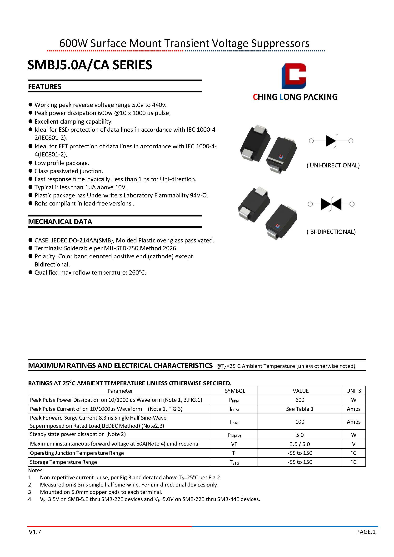 SMBJ5.0A/CA SERIES