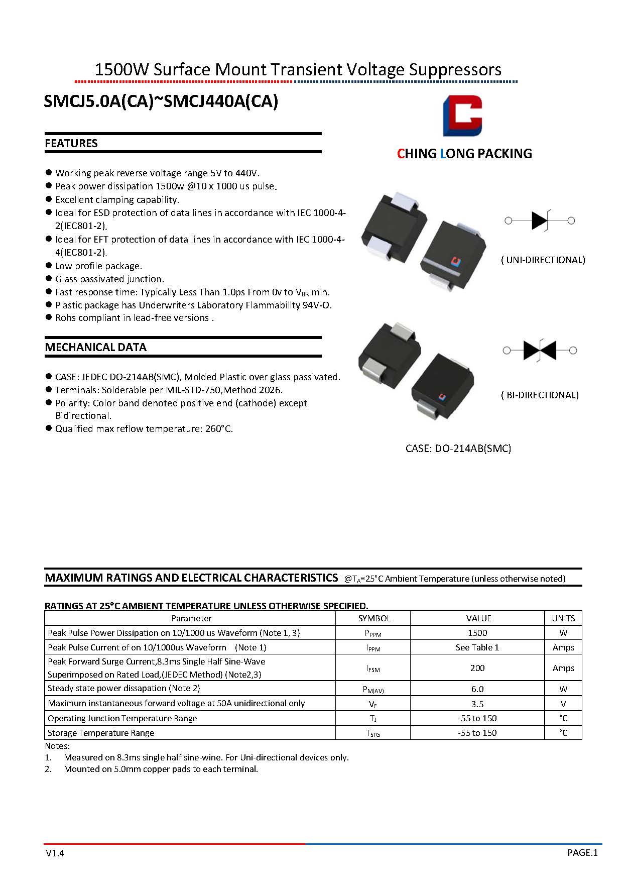 SMCJ5.0A(CA)~SMCJ440A(CA)