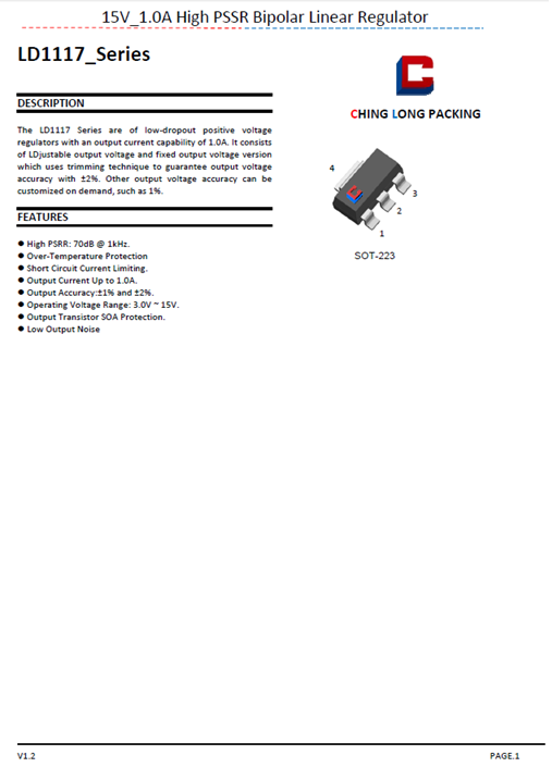 15V_1.0A High PSSR Bipolar Linear Regulator