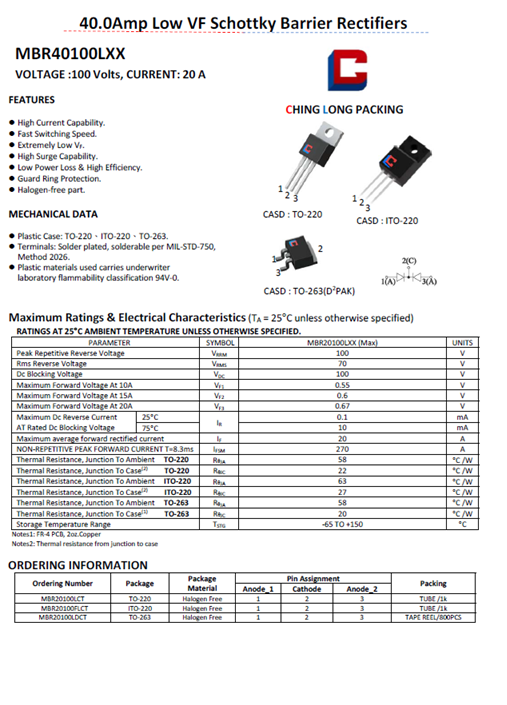 40.0Amp Low VF Schottky Barrier Rectifiers