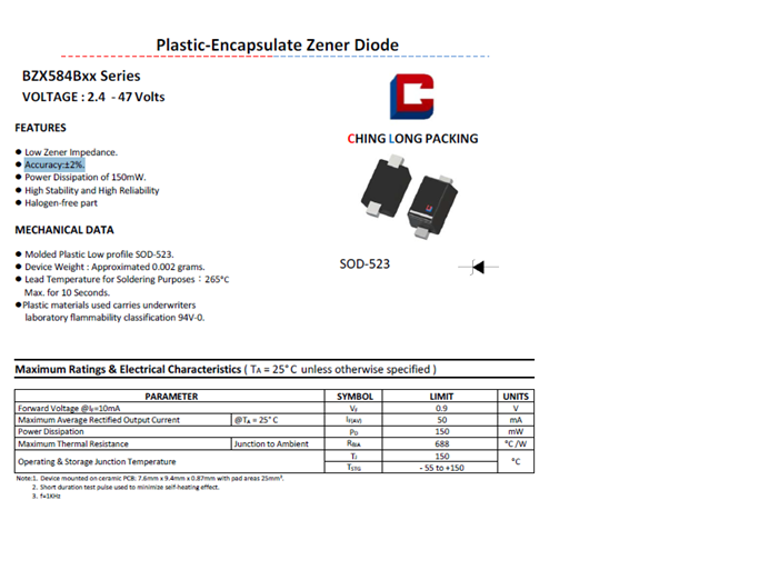 Plastic-Encapsulate Zener Diode Accuracy:±2%.