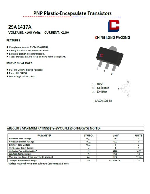 PNP Plastic-Encapsulate Transistors SOT-89